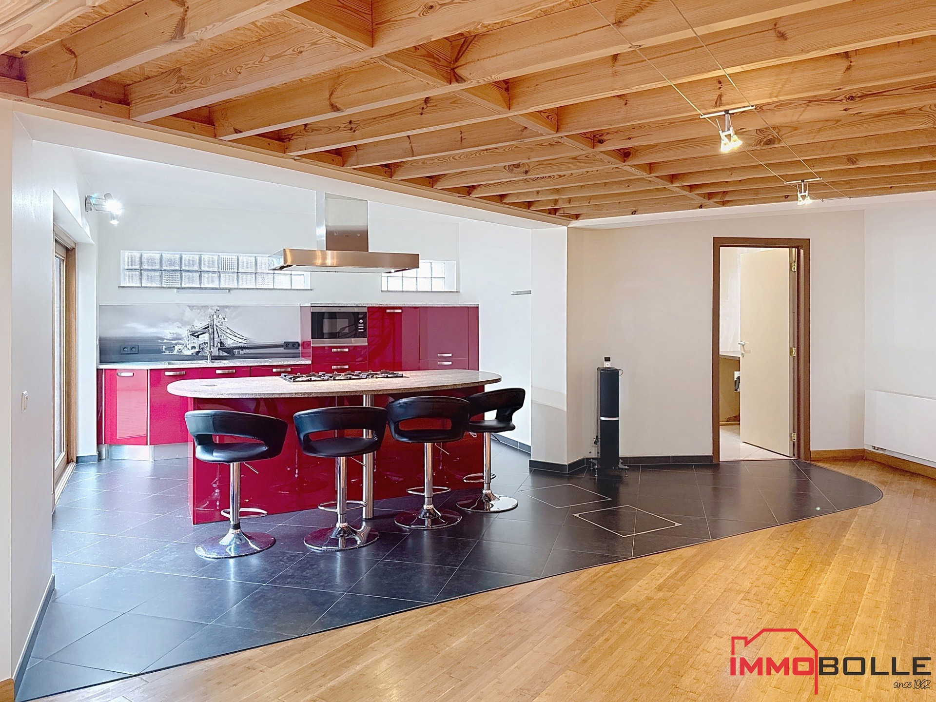 Au cœur de Perwez, dans une rue très calme et à proximité de toutes les facilités, magnifique duplex/loft atypique et rénové avec goût de 220m² habitable + un agréable espace extérieur de 25m². Le loft se compose au rez-de-chaussée d'un hall d'entrée avec vestiaire et WC séparé, d'un immense et lumineux séjour de 120m² avec parquet et une cuisine ouverte et full équipée. Salle de douche, wc séparé, buanderie et grand garage de 30m² avec porte automatique et nouvelle chaudière au gaz. Le 1er étage surplombant le séjour est composé d'un vaste dégagement avec de nombreux placards intégrés et parquet au sol, et desservant les 2 belles chambres (14m² et 18m²). Système d'alarme. Double vitrage. CPEB: C. Libre. A visiter sans tarder - Coup de coeur assuré!