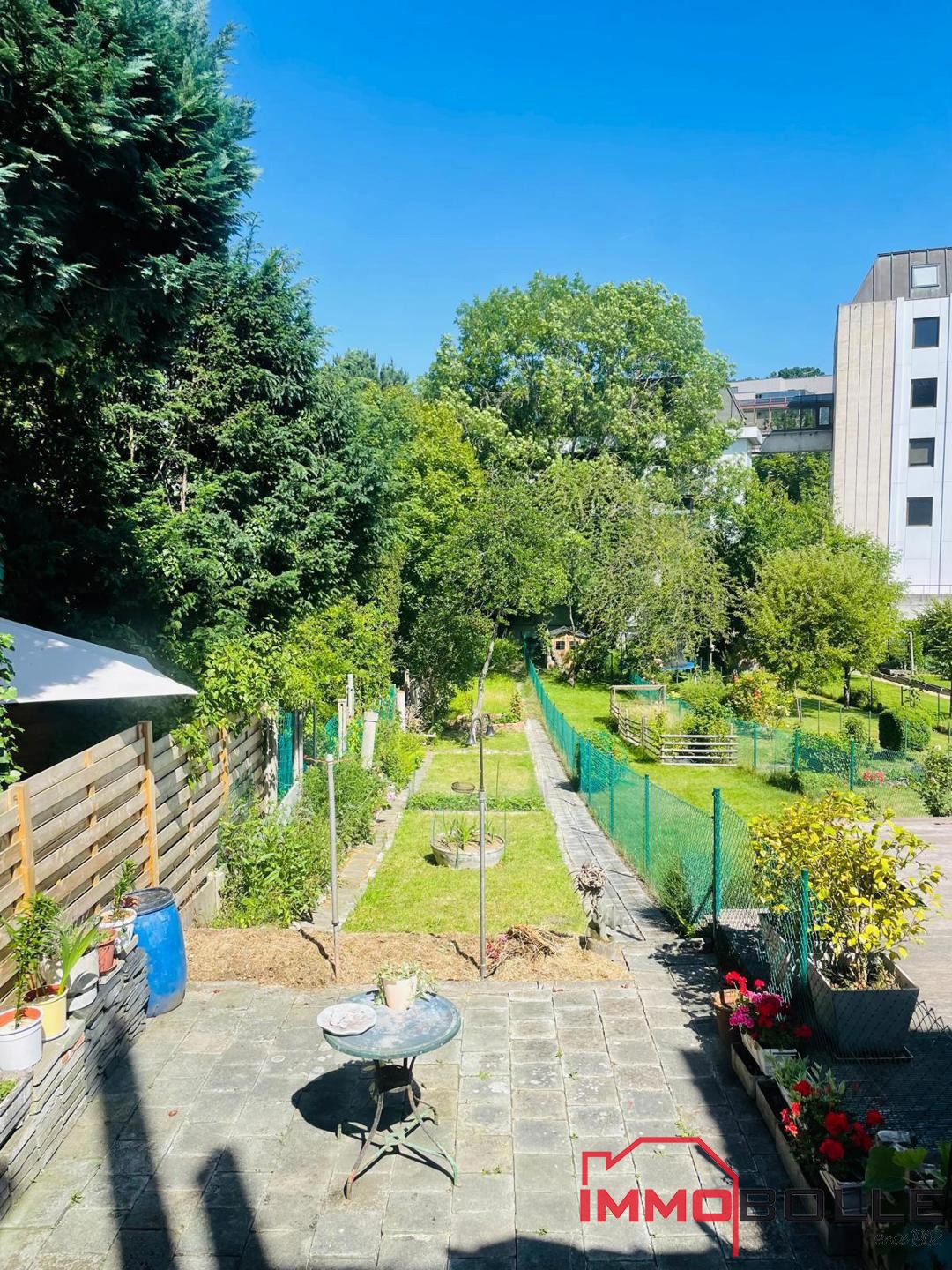 L’extérieur comprend une terrasse et un jardin de +/- 285m² orienté nord-ouest, sans vis-à-vis direct à l’arrière.